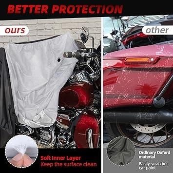 600D Motorcycle Cover,Heavy Duty Waterproof Motorcycle Covers Outdoor Storage with Lock-Holes Compatible with Harley Davidson, Honda, Suzuki, Yamaha (Side Box)