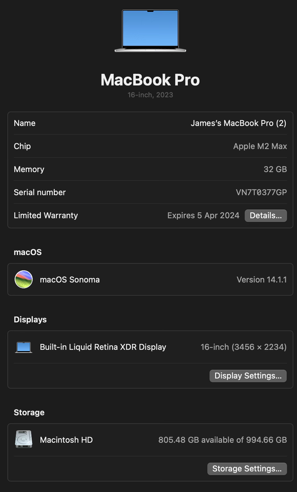 Apple MacBook Pro 16 M2 Max, 32GB, 1TB SSD Silver Excellent