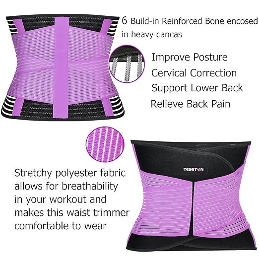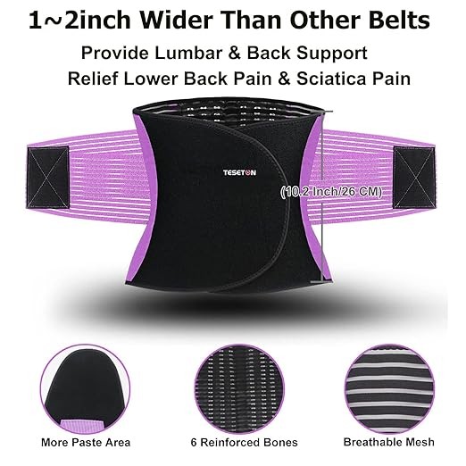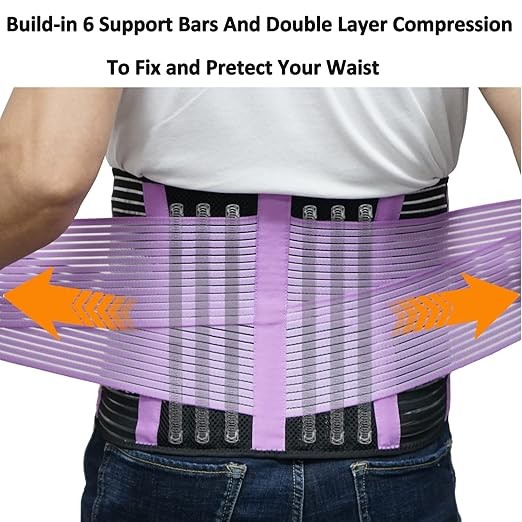 Back Support Brace Belt for Men & Women, Breathable Lumbar Support Belt, scoliosis back brace, Waist Relax Lower Back Pain & Sciatica Pain Relief with 8 reinforced Bones 02 Purple-XXL