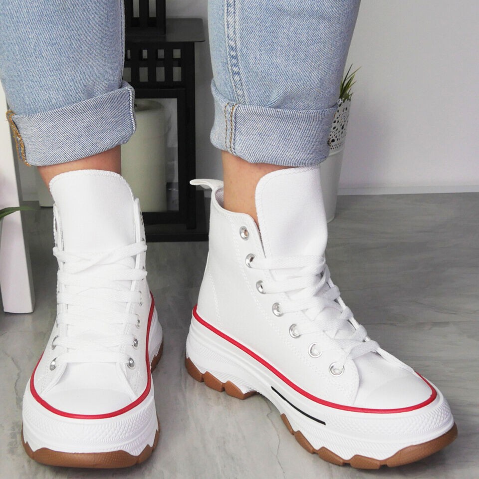 Canvas Womens Trainers Platform Ladies Lace Up Sneakers Comfort Casual Shoes