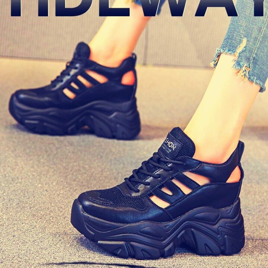 Womens Wedge Heel Black Slip on Shoes Summer Sandals Platform Open Toe Plus Size