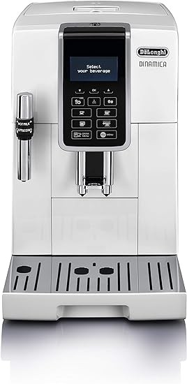 De'Longhi ECAM35035W Dinamica, Fully Automatic Coffee Machine, Espresso, 6 Menu Options, Cafe Japonaise & Specialty Features, LCD Display, Froth Adjustable Milk Frother, White