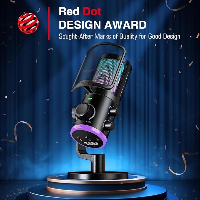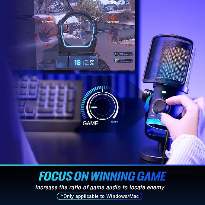 FIFINE Gaming PC Microphone, USB Streaming Microphone with Game Chat Balance, Computer Condenser Desktop RGB Mic with Mute Button, Noise Cancellation for Podcast/Twitch/Discord-AMPLIGAME AM6
