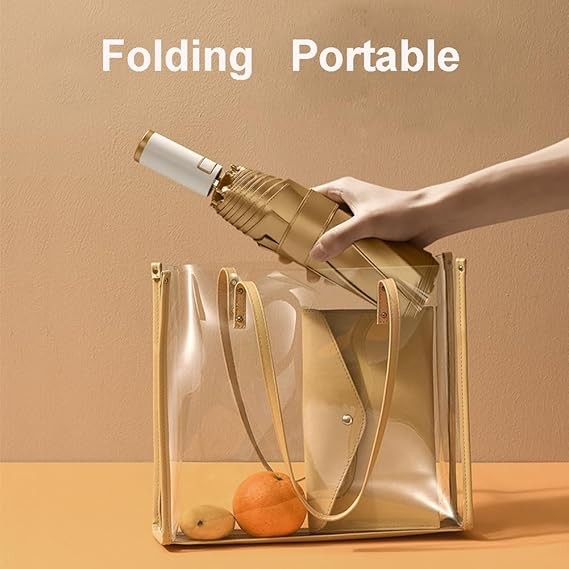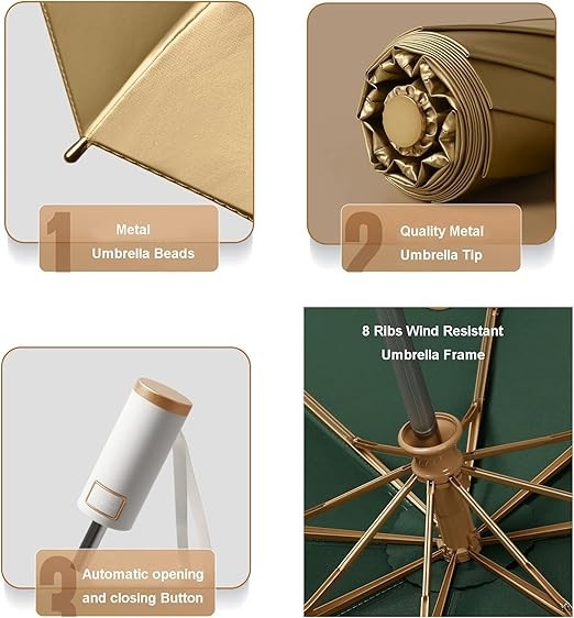 LCY Automatic Anti-UV Folding Golden Parasol Umbrella Small Lightweight Compact Sun & Rain Umbrella