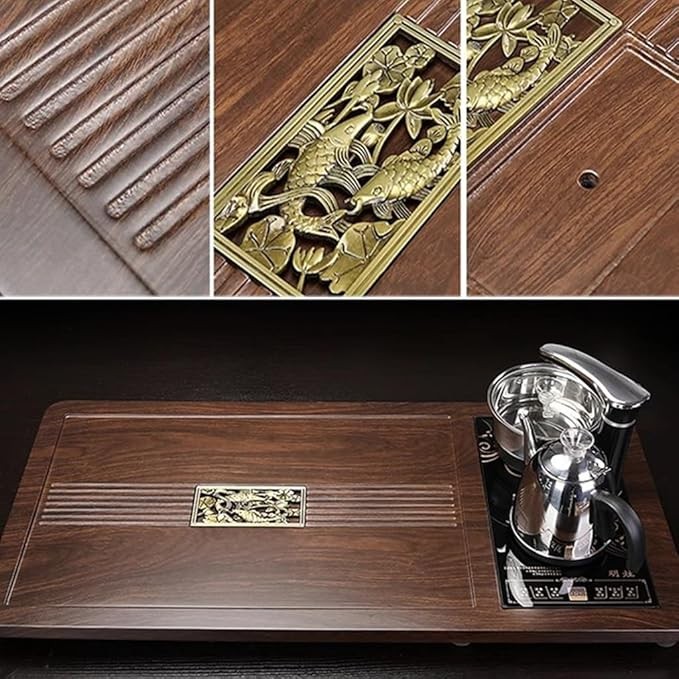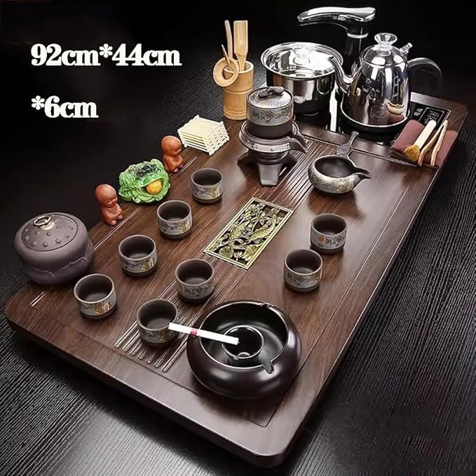 MEHWSUR Kung Fu Tea Set,Home Automatic Teapot,Gongfu Tea Set,Tea Ceremony,Tea Cup,Electric Stove,Tea Table,Solid Wood Tea Tray,Chinese Ceramic Tea Set (Color : Style-2)