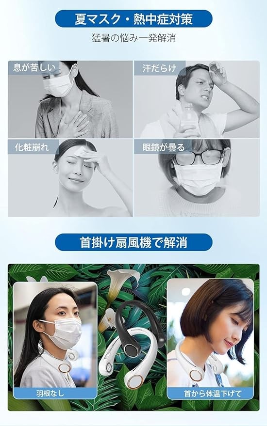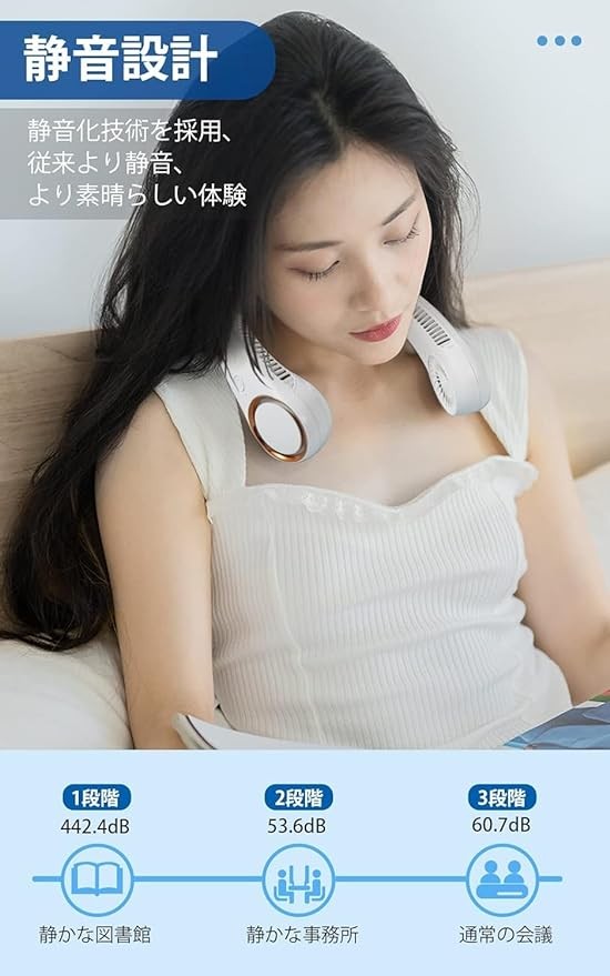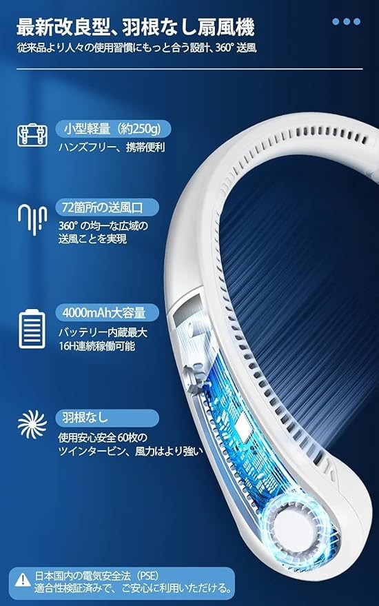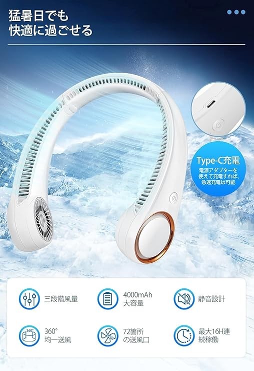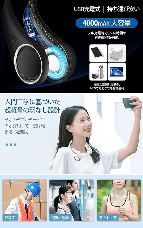 Neck Fan, 2024 New Neck Fan, Portable Fan, Bladeless, 16 Hours of Continuous Usage, 3 Levels of Air Flow Adjustment, Handsfree, 4,000 mAh, Large Capacity, USB Rechargeable, Silent, Lightweight, Easy