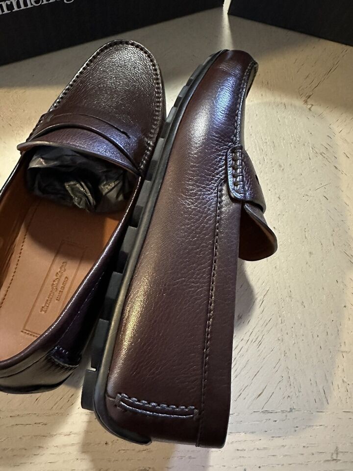 New $660 Ermenegildo Zegna Leather Driver Loafers Shoes Brown 11 US