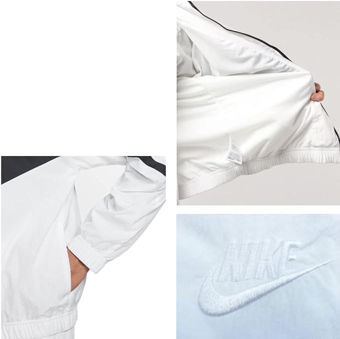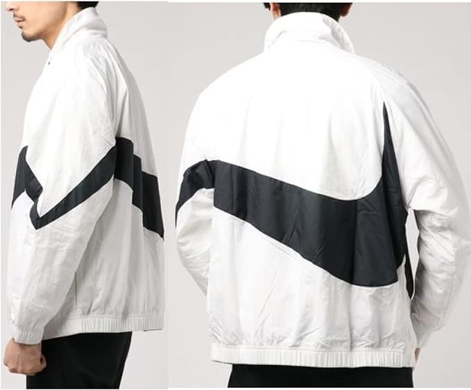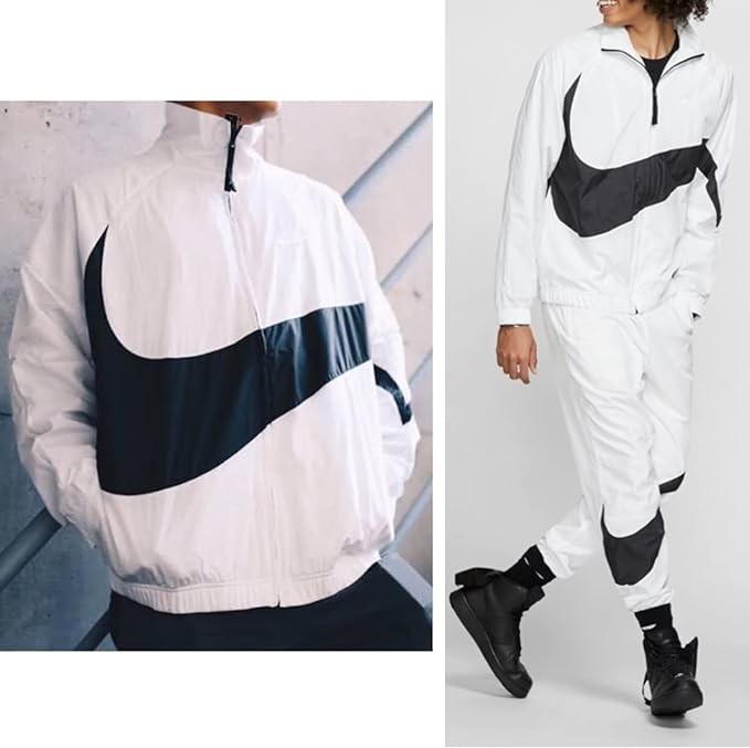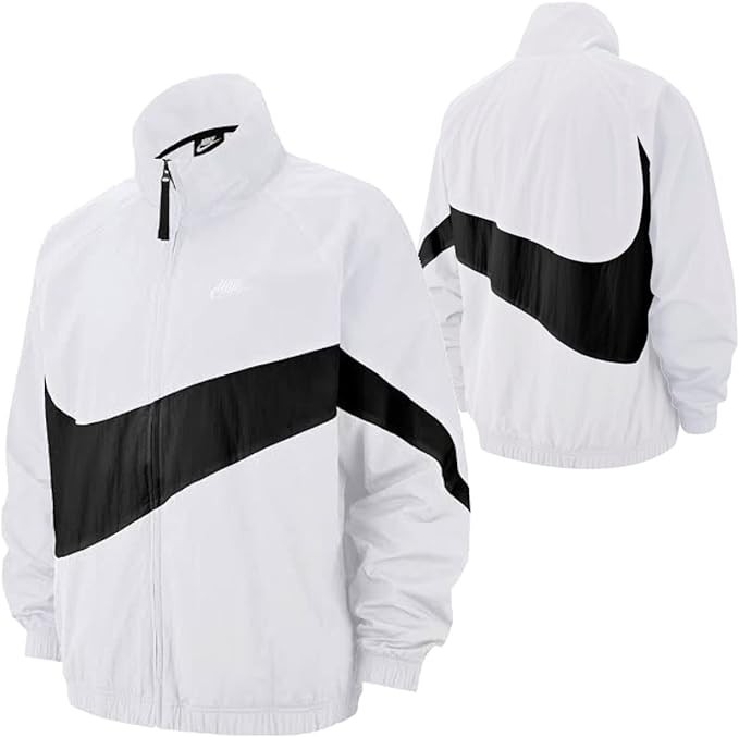 Nike AR3133-100 Men's Woven Jacket, Big Swoosh Nylon Top, HRB STMT Statement, Sportswear, Street, WhiteBlack, Authentic Product, multicolor (white black)