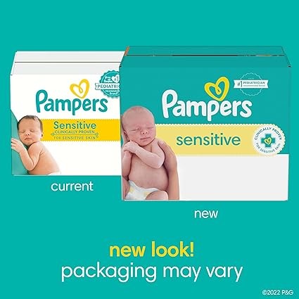Pampers Sensitive Baby Wipes, Water Based, Hypoallergenic and Unscented, 16 Flip-Top Packs (1344 Wipes Total)