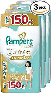 Pants Big Size] Pampers Diapers, Best for Skin (26.6 - 48.5 lbs (12 - 22 kg), 150 Sheets (50 Sheets x 3 Packs) [Case Products] [Amazon.co.jp Exclusive]