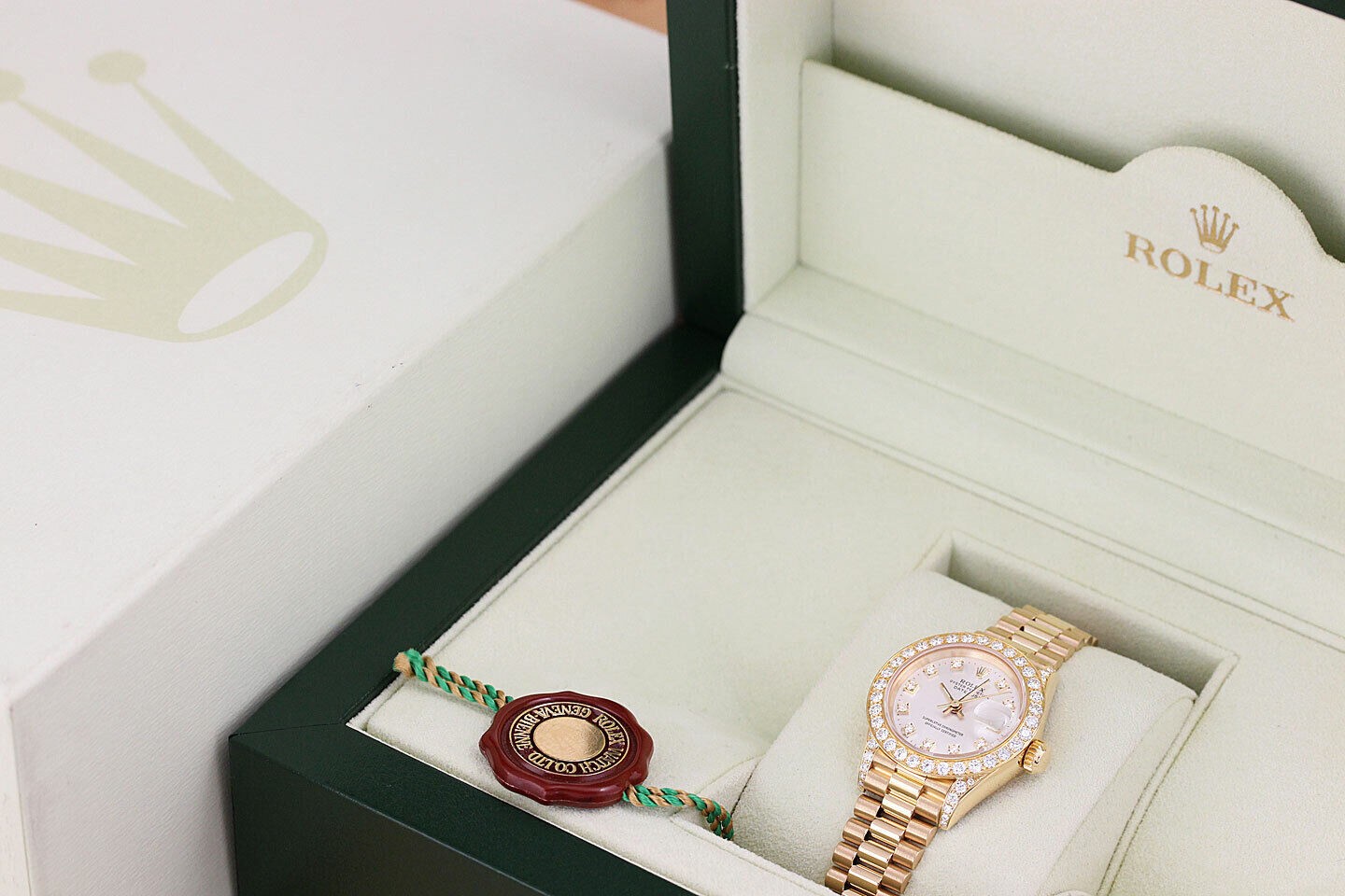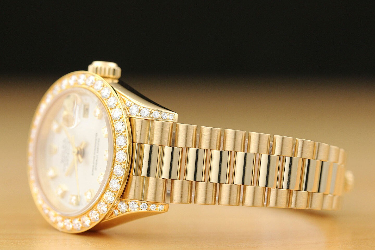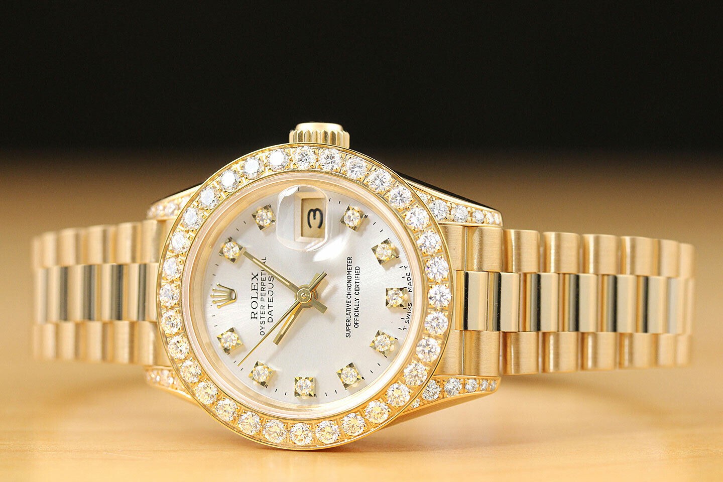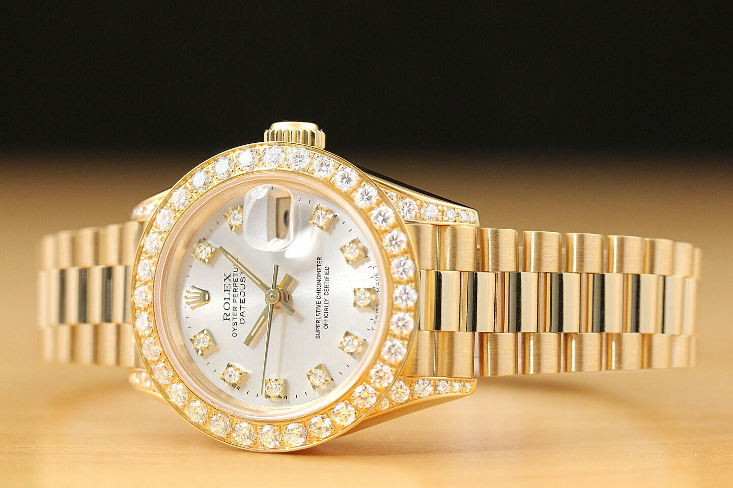 ROLEX LADIES PRESIDENT FACTORY DIAMOND DIAL 18K YELLOW GOLD QUICKSET WATCH