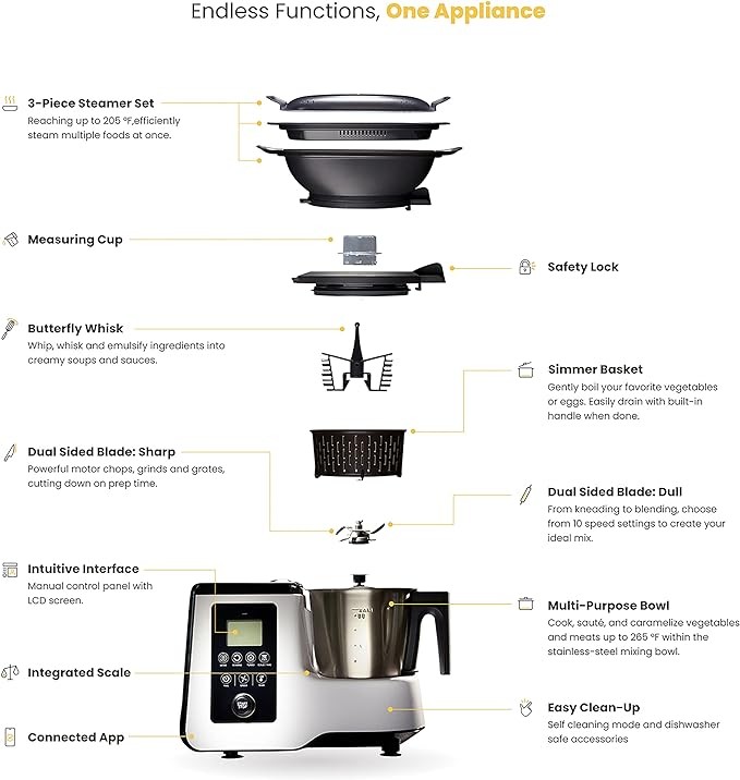 Smart All-in-1 Multi-Cooker, 10+ Cooking Functions, Built-in Scale, Guided Recipes, Steam, Cook, Knead, Bluetooth App Connectivity, 2.3 QT, White