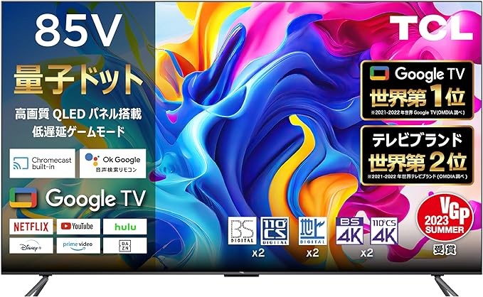 TCL 85V Type, 4K Quantum Dot, Google TV, 120Hz, DLG Game Mode, LCD TV, FreeSync, Built-In W Tuner, Dolby Vision, Dolby ATMOS, Internet Video Support, Chrome Cast, Audio