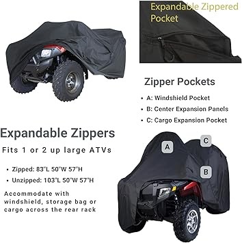 Trailerable ATV Cover, Heavy Duty Waterproof Quad 4 Wheeler All Terrain Vehicles Cover for Polaris Kawasaki Yamaha Suzuki Arctic Cat Can-Am, Expandable Cover Fits 83 to 103 L