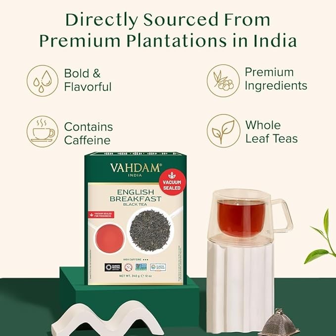 VAHDAM, Original English Breakfast Black Tea Leaves (340g/12oz) 170+ Cups | Non GMO, Gluten Free | Strong & Aromatic Loose Leaf Tea | Unblended Single Origin Tea | Vacuum Sealed Pack