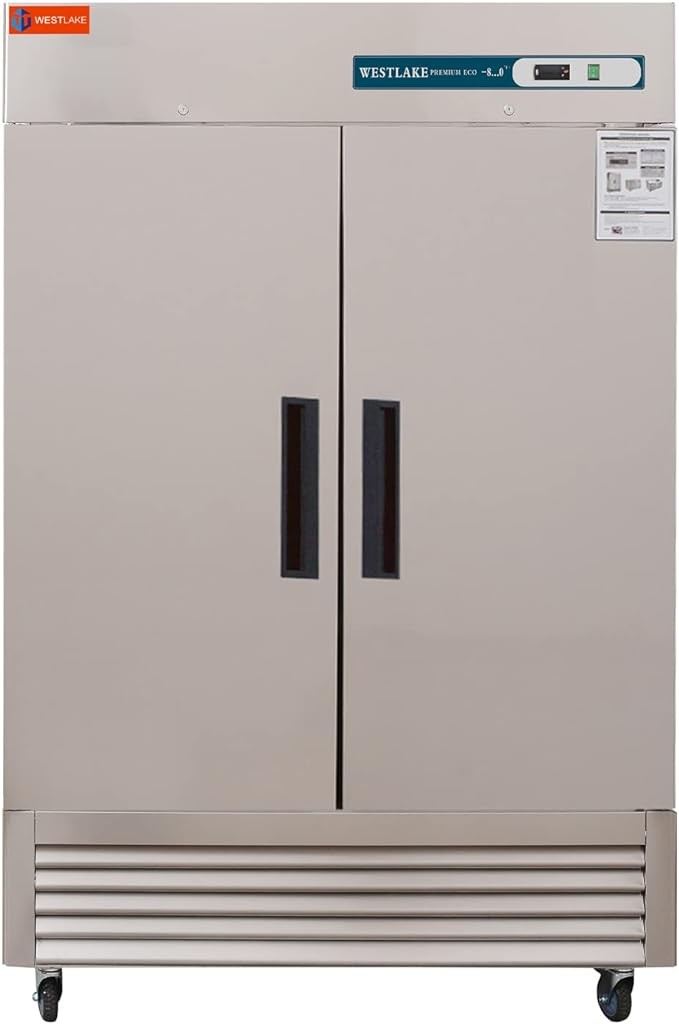 WESTLAKE Commercial Freezer 54W 2 Door 2 Section Stainless Steel Reach-in Solid Door Upright Fan Cooling 49 Cu.ft Freezer for Restaurant, Bar, Shop, etc