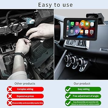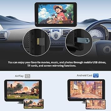 Wireless CarPlayAndroid Auto Touch Screen Car Radio Portable Dash Mount Adapter NavigationMirrorLink HD LRVFMAMVoice Control 7-inch Scree