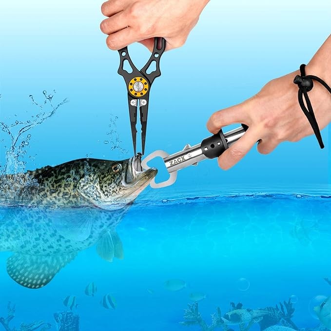 ZACX Fish Lip Gripper Pliers - Upgraded Muti-Function Hook Remover and Split Ring Pliers for Fly Fishing, Ice Fishing, Fishing Gear - Gift for Men (Package B)